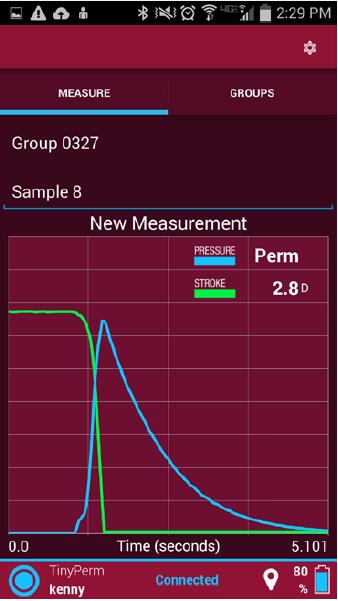 测量值自动存储并编目在NER提供的Android™设备上,并与TinyPerm渗透率仪无线通信。Android设备显示了实时测量时的时域压力和体积数据。TinyPerm的新功能允许在低渗透率下更快的得出结果。